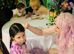 • Princess make-overs OR face glitter and glitter tattoos OR a themed craft (add another character to include 2 of these activities)